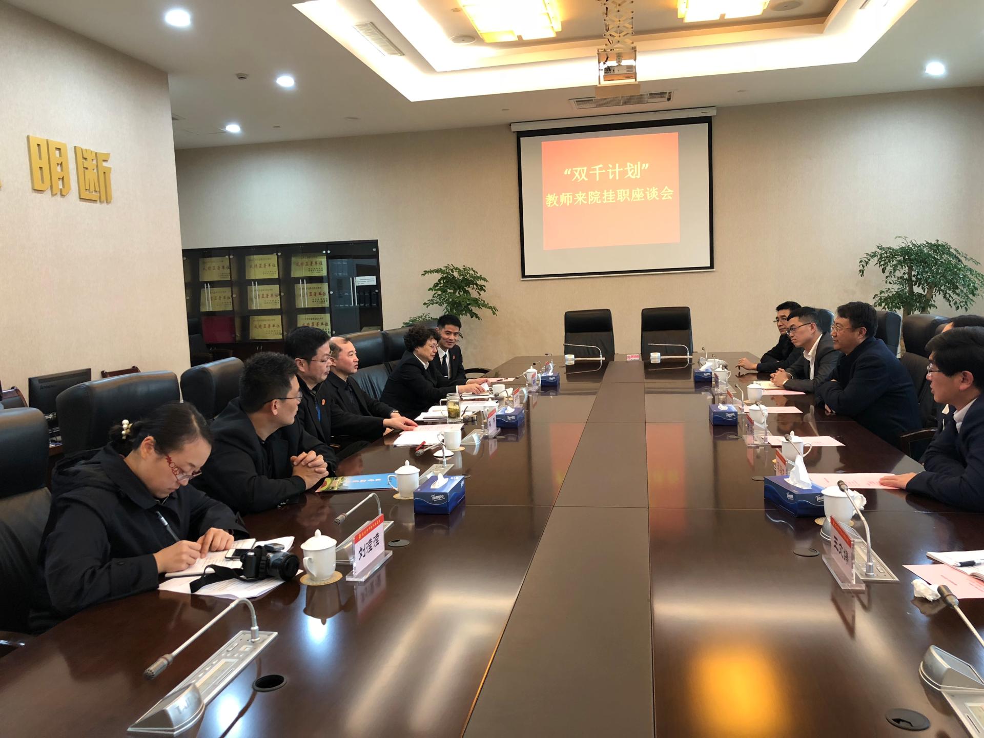 郝艳兵、李海龙两位教师入选2017年教育部“双千计划”,并派至杭州市中级人民法院为期一年的挂职锻炼。3月14日下午,院长李占荣、党委书记朱丹、杭州市中级人民法院党组成员、政治部主任谷利斌、干部人事处处长龚玫虹、刑二庭副庭长孙伟、民二庭审判长黄江平等出席了在杭州市中级人民法院举办的挂职欢迎会。
