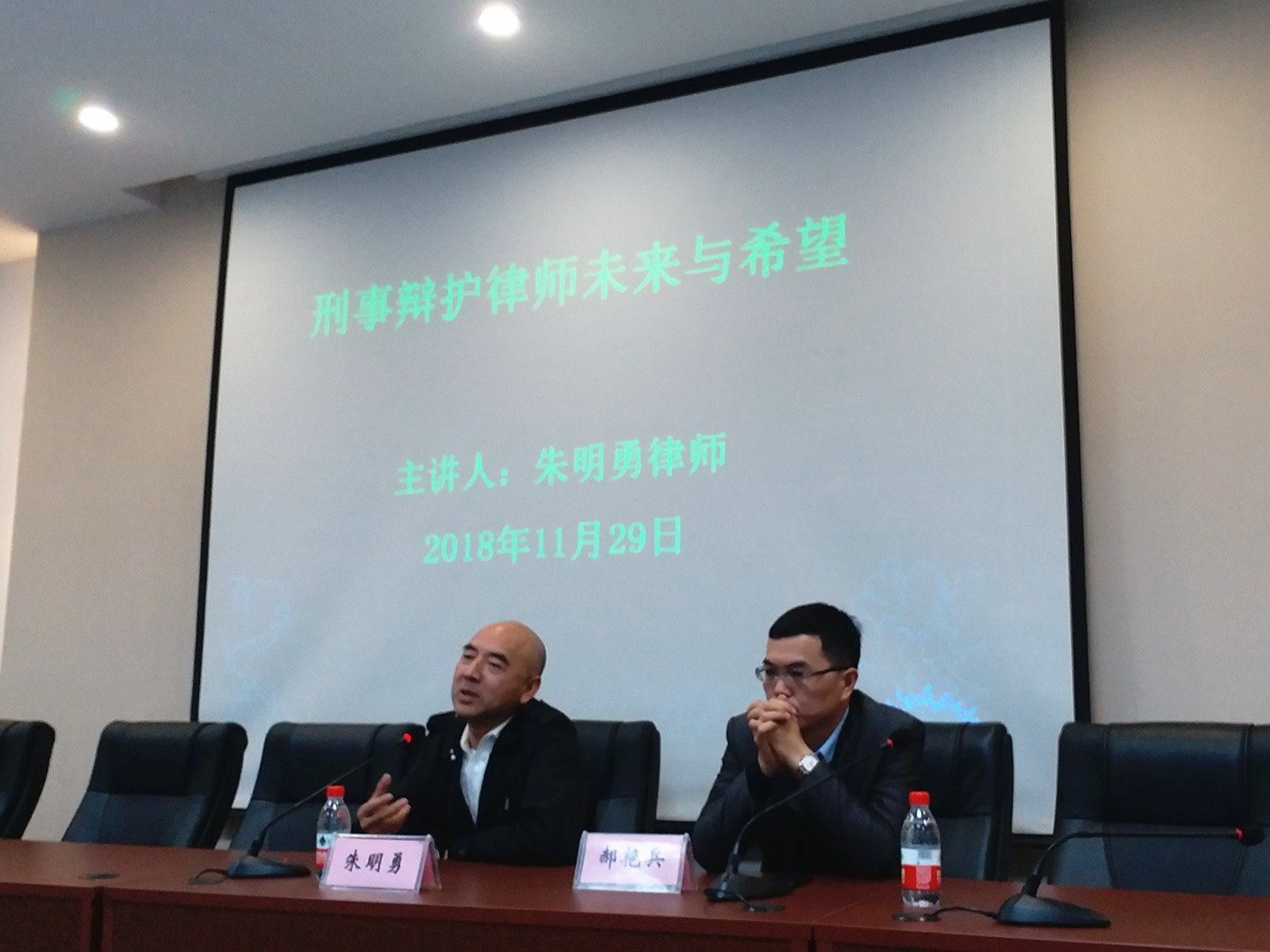 101室举行。我们很荣幸邀请到北京京门律师事务所主任朱明勇律师主讲。本次讲座的主题是“刑事辩护律师未来与希望”。讲座由郝艳兵副教授主持,王俊老师、李森老师、冯姣老师以及在线漫画