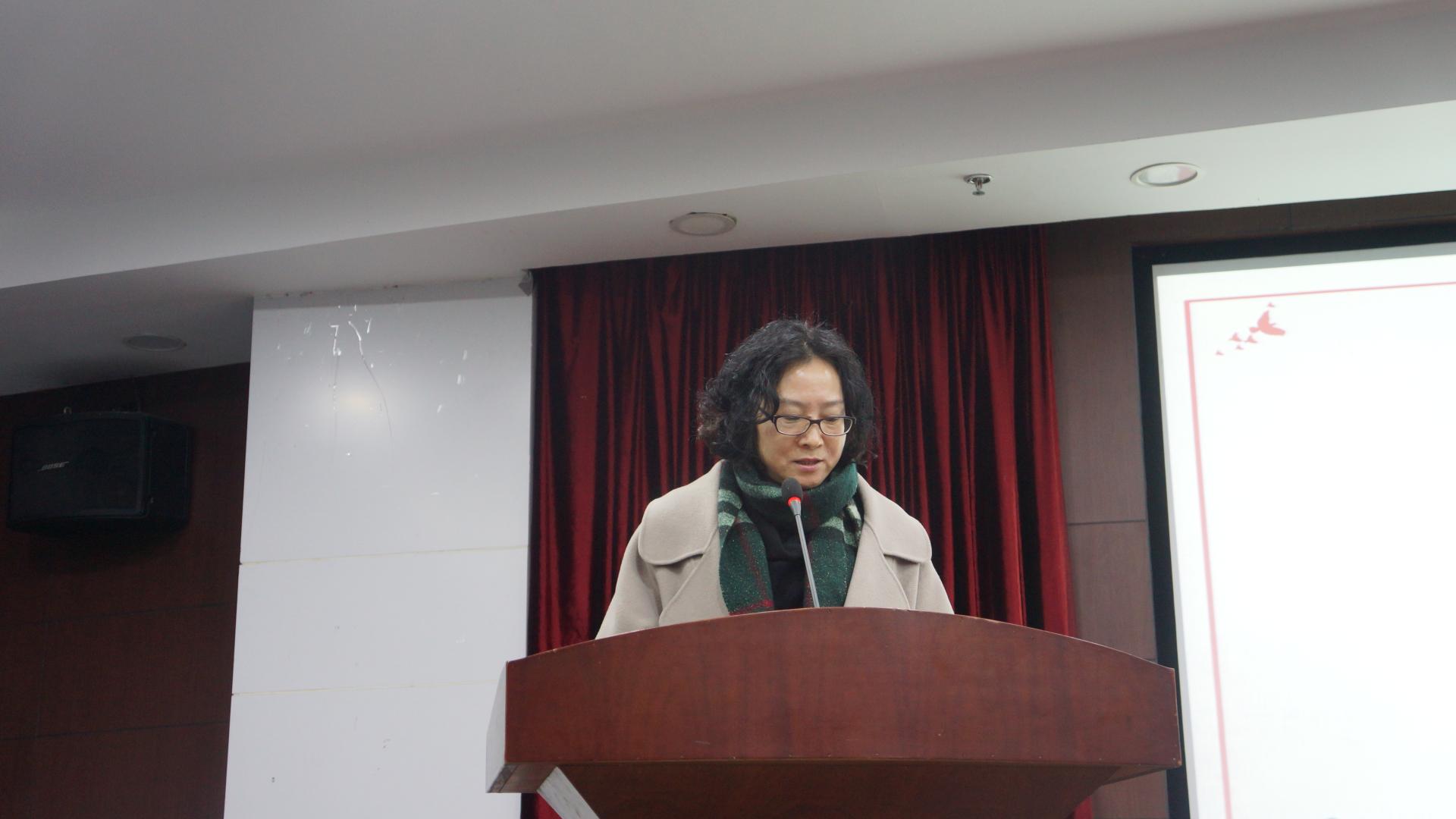 党委书记朱丹老师致辞。她对获奖的先进个人和先进集体表示祝贺,细数了在线漫画