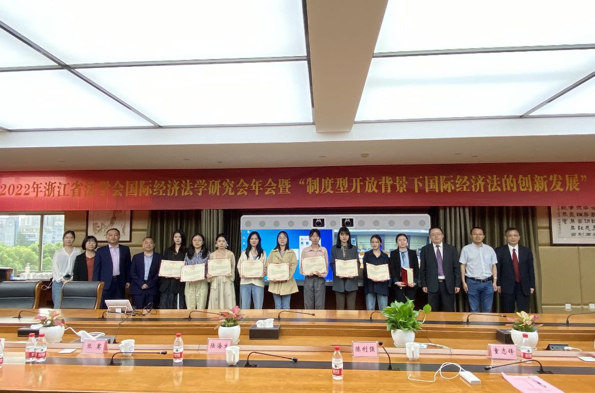 浙江省法学会国际经济法学研究会副会长、浙江理工大学法政学院院长王健教授宣读论文获奖名单。