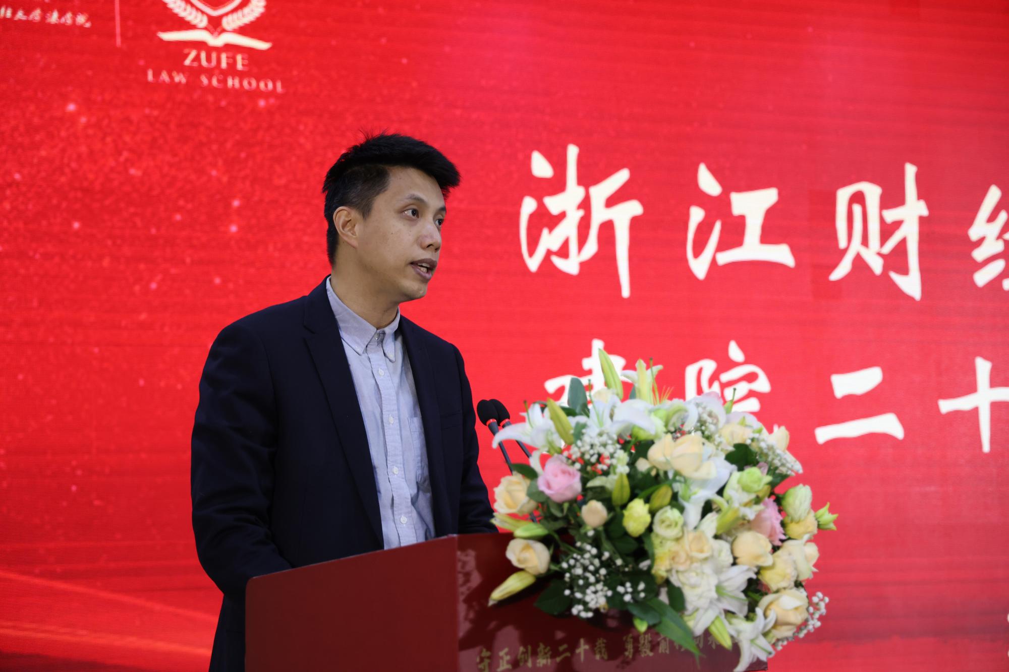 2002届校友代表盛汉钢代表校友致辞,他们回忆了美好的大学时光,感恩学院和老师为学生成长所提供的舞台、帮助和教导,并衷心祝愿学院越办越好!