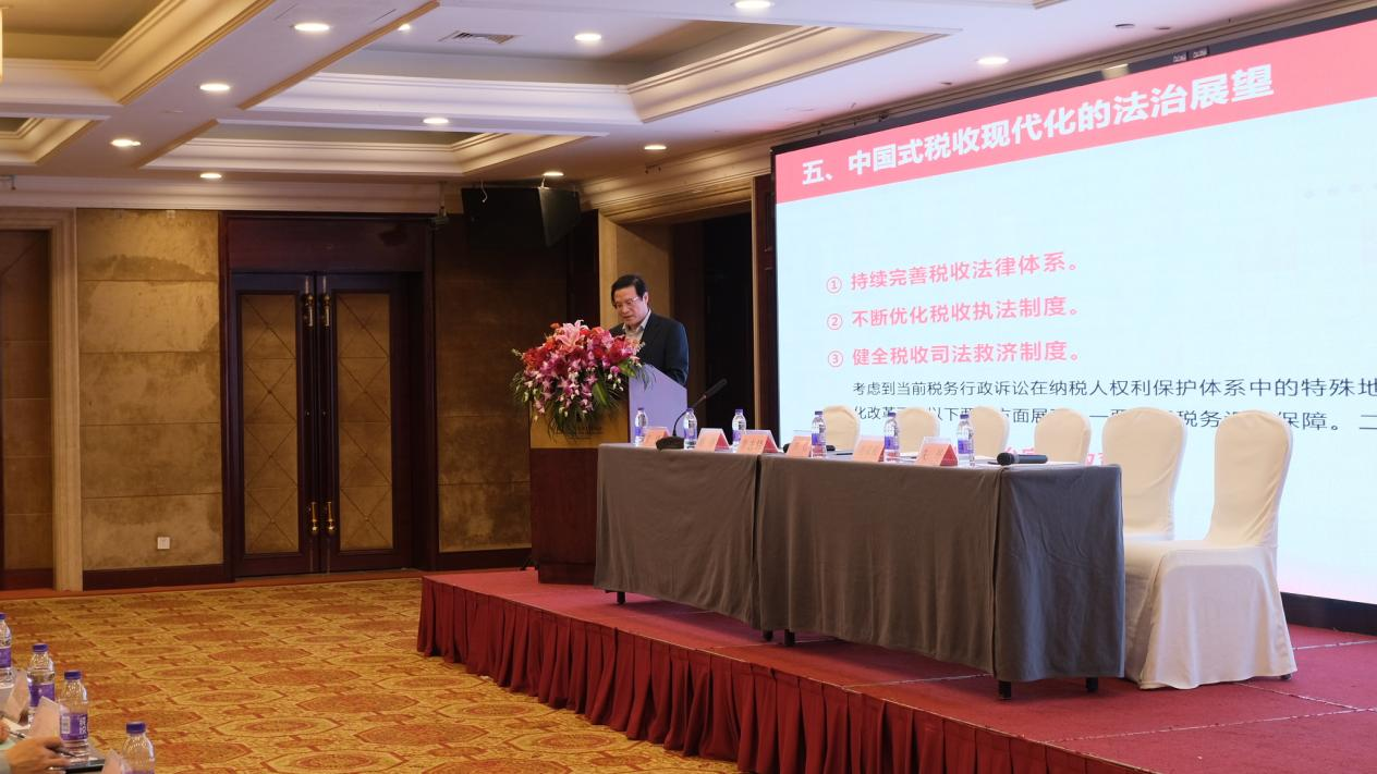 吴伟达教授以“中国式税收现代化的顶层设计与法治展望——党的二十大报告学习心得”为题,从党的二十大报告提出中国式现代化的伟大意义及其与税收的内在关联、中国式税收现代化的基本内涵、现有税收制度的不足、税收现代化需要顶层设计以及中国式税收现代化的法治展望五个方面,谈了学习二十大报告中财税法律思想的体会。