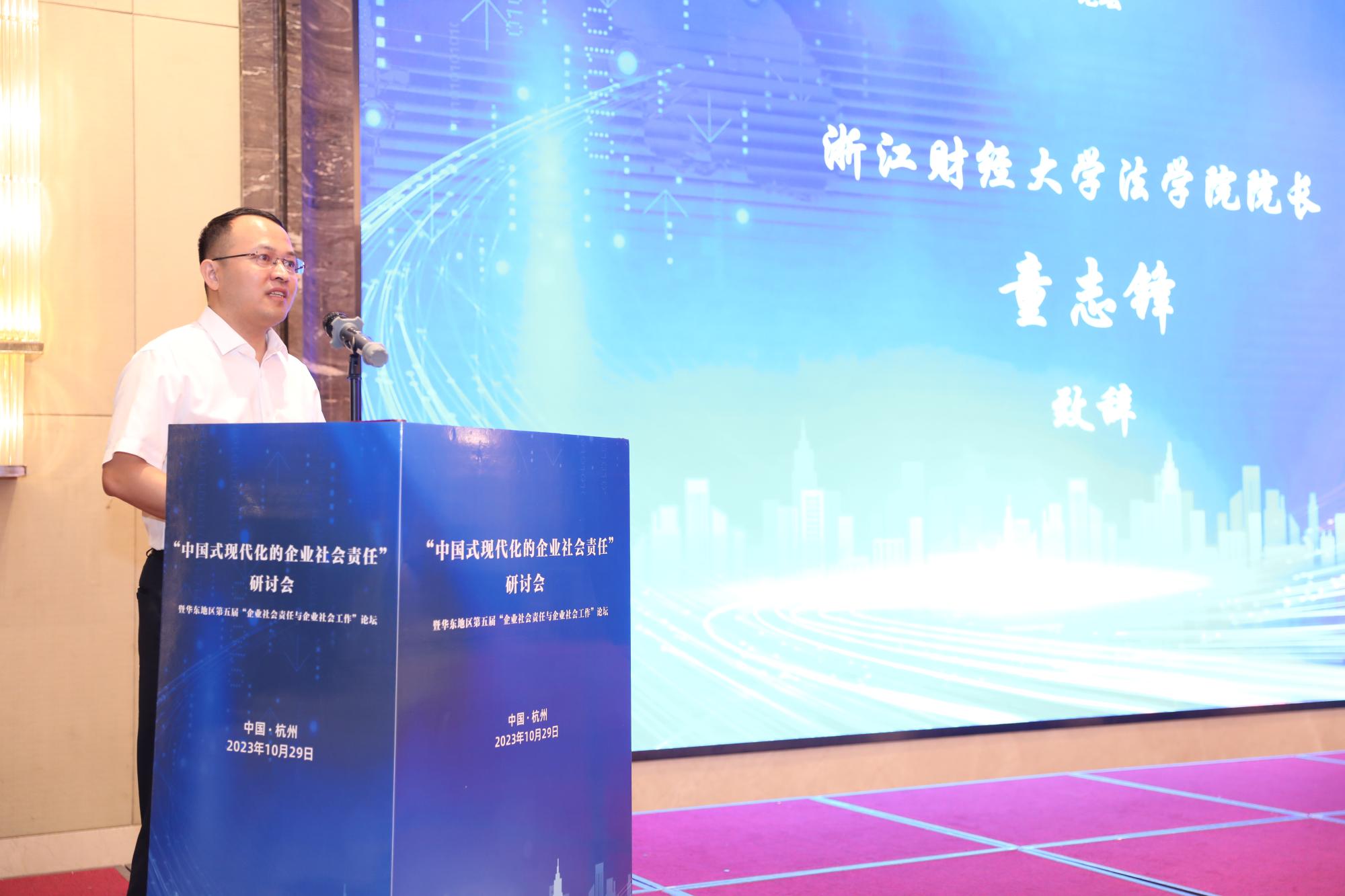 院长童志锋教授在致辞时表示,在中国式现代化新时代背景下,企业社会工作在协助企业承担社会组织责任、推动企业高质量发展和促进企业员工自我成长等方面发挥着不可替代的作用,为浙江省推动“中国式现代化”以及建设共同富裕示范区添砖加瓦。