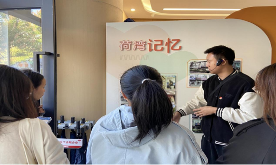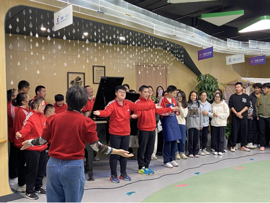 在机构倪砚秋老师的带领下,同学们来到了“弯湾·爱生活”茶饮铺,店员是一群长不大的“孩子”,他们都是心智障碍青年。小小的茶饮铺除了售卖红茶、奶茶、咖啡,还为市民提供免费凉茶,被称作“杭城最年轻的茶摊”。店员还邀请同学们品茶,口感之丰富得到了大家的一致称赞。接着,同学们和弯湾托管中心的学员们合唱两首歌曲,歌声也拉近了彼此之间的距离,芥蒂和隔阂悄然消解……紧接着,倪砚秋老师带领同学们参观了体验馆的具体分区,从一楼休闲娱乐区逐渐深入到二楼更为细化的学习区、运动区等,同学们从倪老师的耐心叙述中获悉了许多关于自闭症群体的知识。参观期间,同学们还观看了弯湾托管中心的介绍短片,大家对自闭症群体的认识也愈发深刻。短暂休息以后,我们在社区街道工作人员的带领下,继续参观体验馆附近的弯湾洗车行、阳光驿站、荷湾•暖咖。