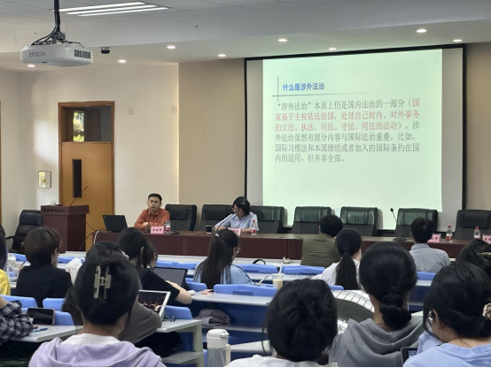 差异化的涉外法治人才培养模式,指出存在课程设计和培养割裂的涉外法治人才培养障碍。其后,李晓郛副教授播放了模拟谈判与模拟法庭的相关视频,介绍了“一带一路”实务模拟谈判国际大赛的比赛特色和理念,讲解了国际实务谈判的程序规则和谈判思维技巧。