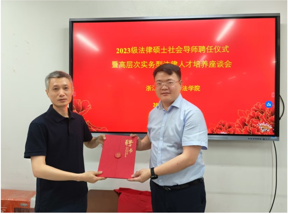 党委书记丁洪、副院长李海龙等出席会议,来自浙江省高级人民法院、阿里巴巴集团、淘宝天猫商业集团、浙江浙联律师事务所、北京观韬中茂(杭州)律师事务所、浙江天册律师事务所、浙江六和律师事务所、北京德恒(杭州)律师事务所、浙江浙杭律师事务所、北京天驰君泰(杭州)律师事务所、浙江泰杭律师事务所、北京盈科(杭州)律师事务所、上海邦信阳(杭州)律师事务所、浙江律匠律师事务所、浙江仁谐律师事务所、浙江新台州律师事务所、浙江圣银律师事务所、浙江优穗律师事务所、浙江杭北律师事务所、浙江九玄律师事务所等实务部门的社会导师以及2023级全体法律硕士专业研究生共计80余人参加本次会议。本次聘任仪式和座谈会由在线漫画