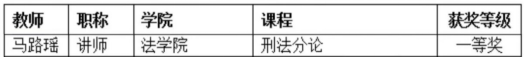 马路瑶老师主持的参赛课程《刑法分论》喜获校“新文科”专项赛一等奖。