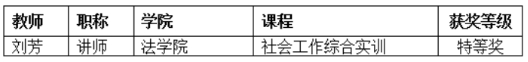 刘芳老师主持的参赛课程《社会工作综合实训》喜获校“产教融合”专项赛特等奖。
