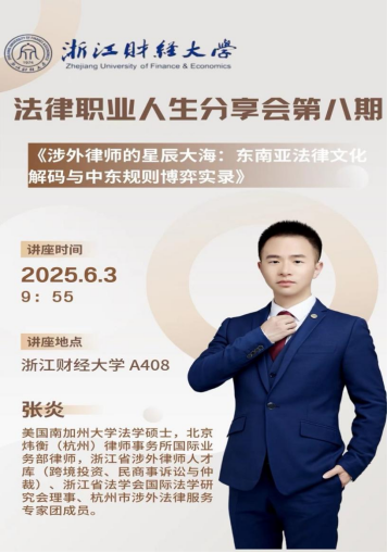 学生带来了一场题为“涉外律师的星辰大海:东南亚法律文化解码与中东规则博弈实录”的职业分享。“职业人生分享会”是23级非诉实验班班主任张晓晨老师策划组织的系列活动,旨在邀请各行各业的精英人士分享他们的人生经验、执业经历,为同学们指路,现已举办到第八期。