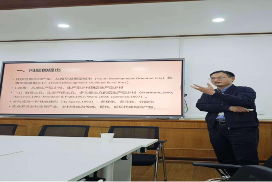 中国社会学会农村社会学专委会副主任陈建胜老师就“青年发展型乡村:政策、乡村新组织与积极青年”主题做了报告,并点评了“新质农业、农村发展”分论坛。孙陈洋、徐瑛杰两位研究生参与了分论坛讨论。