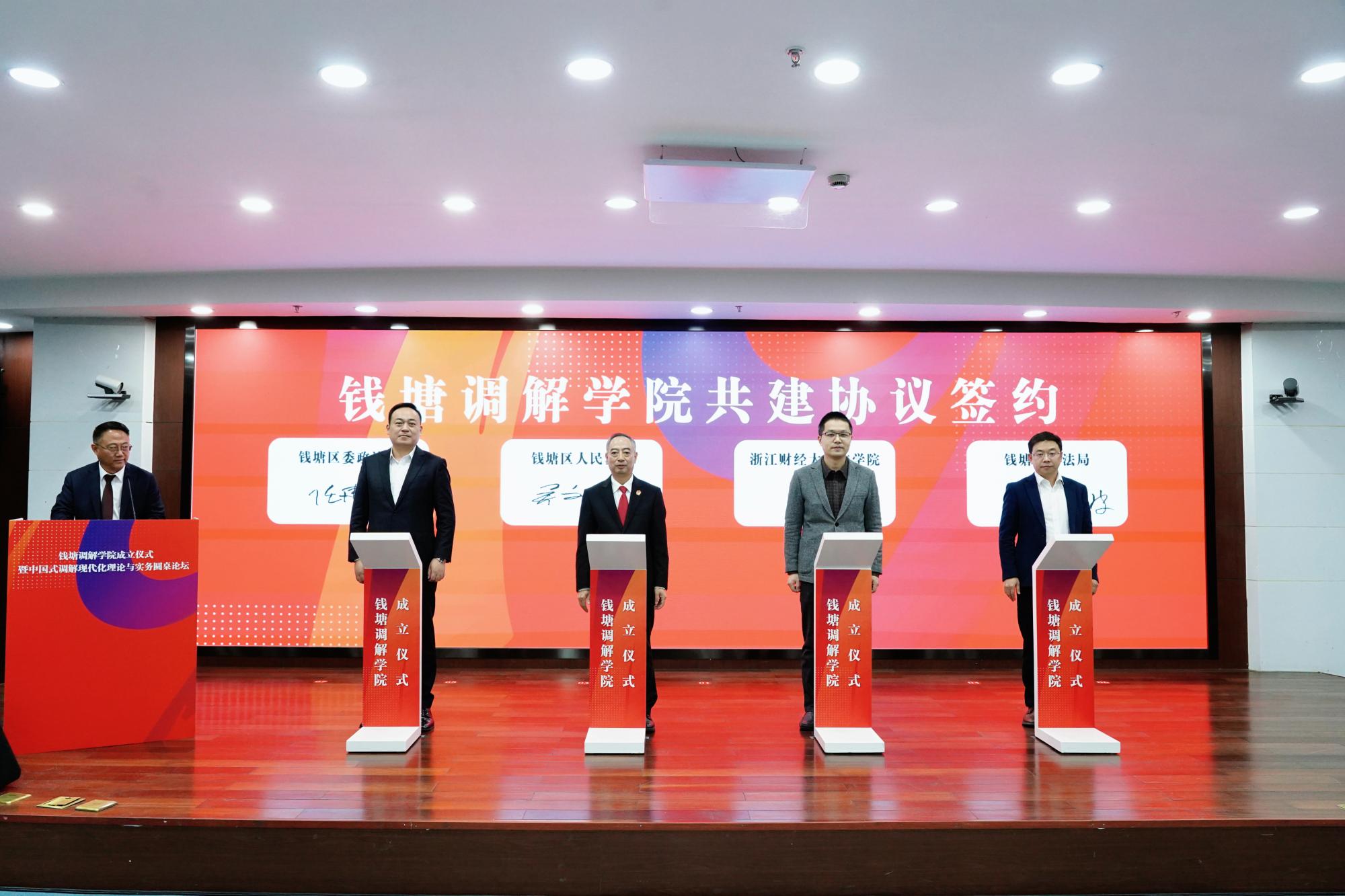 院长唐勇一起签署钱塘调解学院共建协议。