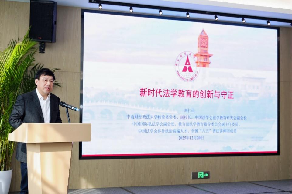 院长张雅萍教授主持主旨报告。刘仁山教授以《新时代法学教育的创新与守正》为题,聚焦“百年大变局”下人工智能加速迭代、ESG责任兴起等新挑战,系统剖析财经类高校法学教育在生源变化、专业转型等方面面临的现实压力;强调法学教育应坚持“创新引领、守正固本”,既要推动学科交叉与实践融合,也要回归大学育人本质与法治人才培养规律,为中国式现代化提供坚实的法治人才支撑。