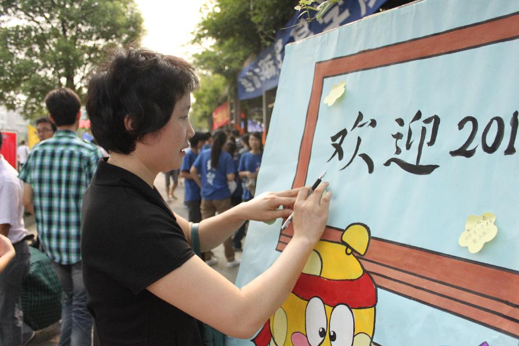 迎新接待处因新生而繁忙并彰显活力