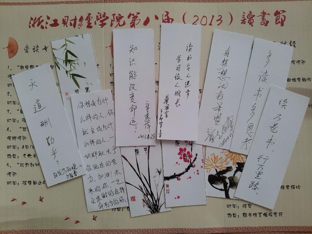 老师们也在书签上写上温馨的话语,激励财大学子进德修业、勤学上进。这些书签将被放置在老师们认捐的爱心图书中,将这份爱心一直传递。