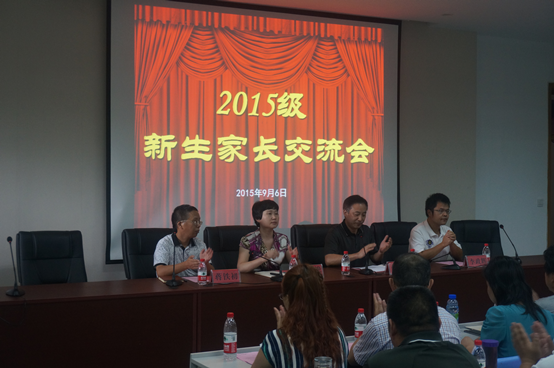 于9月6日13:30,在学院楼101教室隆重召开2015级新生家长交流会。党总支书记蔡国金、副书记罗金艳、副院长蒋铁初、副院长李政辉、2015级新生辅导员王文婷等老师及2015级新生家长参加了本次交流会。