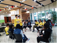 考虑到职工社交不足是当前最普遍的问题,项目第一期主要采用小组工作方法,以破冰活动开篇。首先,主持人席恒博同学向前来参加活动的各位工友介绍了“乐心”社会工作室的发展历程,同时也介绍了本次活动的目的,即通过破冰游戏让大家增进了解,促进沟通,学会寻找和分享快乐。在生动的自我介绍形式之后,主持人身先士卒表演才艺,整个活动现场气氛被点燃。紧接着,从“你是我的小天使”,到“名字连连看”,再到“快乐逗”等活动,组员们由彼此陌生到相互认识,再到相互了解、相互配合,在短时间里已经产生了难能可贵的默契。并且我们亲切的赵老师也带来了一些水果,作为活动奖励,大家乐此不彼。其中让参与者印象最深刻的一个环节是“快乐传播”的游戏,主持人在所有人闭眼的情况下指定一个人为快乐传播者,并让所有人向大家讲述一个自己认为最快乐的事,很多成员认真地分享了自己过去曾经美好的记忆,感触颇深。然而,大家怎么也找不出那个神奇的快乐传播者。其实,主持人根本没有指定任何人是快乐传播者。这个游戏是为了告诉大家:快乐不是别人给予的,而是自己给自己的,只要我们有一双快乐的眼睛,积极乐观微笑面对生活,快乐自然就在身边。
