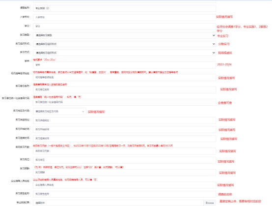 以专业实践2为例,具体填写方式见截图(其他调查只是课程名称那边不同)