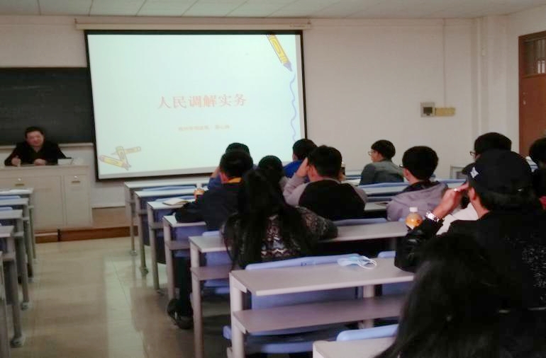 接下来,蔡心扬处长为社工专业的学生讲解和介绍了《中华人民共和国人民调解法》的渊源和发展历程,让同学们了解到现阶段中国各类调解的侧重点和未来的发展的趋势,鼓励同学们积极参与到人民调解的工作中去。同时也给同学们介绍和分析了社会工作专业与人民调解之间的联系和区别,以及调解过程中的法律依据和沟通技巧。最后,蔡处长与老师和学生进行了积极的互动。老师同学们各自讲述了自己的疑问,蔡处长针对不同的问题都做了精确的解答,也让同学们进一步的认识到了社工专业学习人民调解实务的必要性。
