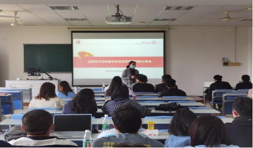 。研究生一支部和二支部全体党员以及研一研二学生参加了分享会,会议由研究生第一党支部书记俞玲玲老师主持。