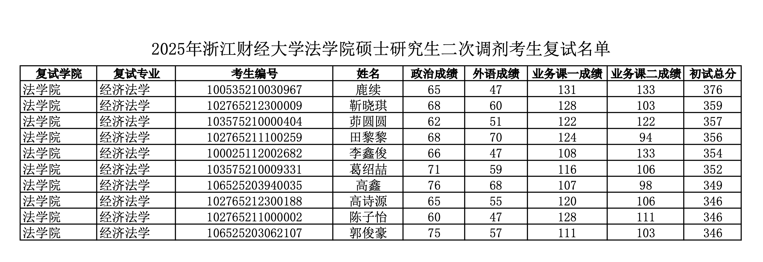 一、调剂复试名单
