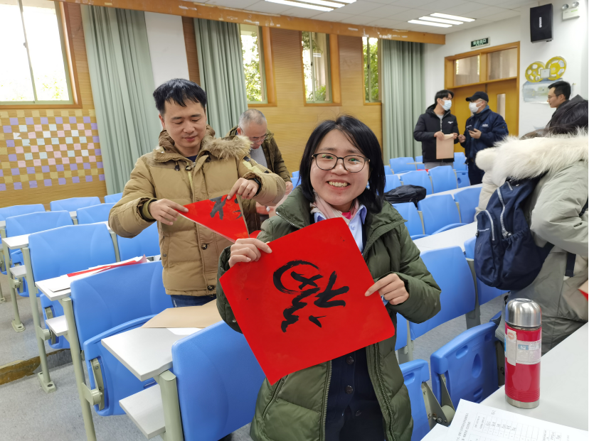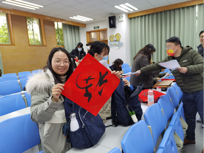 为喜迎2022年的到来,12月28日下午,在线漫画 分工会在101会议室举行“寅虎送福迎新年”活动,学院党政、工会领导为全体老师送上书法手写“福”字。
