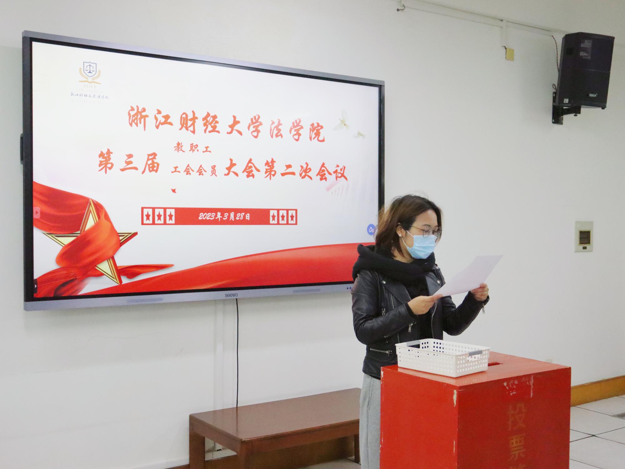 第三届教职工暨工会会员大会第二次会议在学院楼301会议室隆重举行,学院全体教职工参加了大会。会议由学院党委书记朱丹主持。
