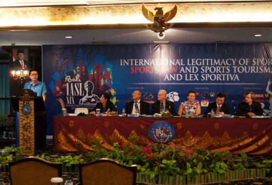 由世界体育法协会(International Association of Sports Law)主办、印度尼西亚体育法研究所承办的“第十九届世界体育法大会”(19th IASL Congress)于10月28日至30日在印度尼西亚城市登巴萨召开。本次大会以“国际体育合法性、体育法和体育旅游业”主题,世界体育法协会主席潘那吉奥•多普拉斯(Dimitrios P. Panagiotopulos)教授,世界体育法协会秘书长舍甫琴科(Olga Shevchenko)教授和印度尼西亚体育法研究所主任秦卡(Hinca IP Pandjaitan XIII SH)博士共同主持开幕式。来自英、美、法、德、希腊、伊朗、墨西哥、匈牙利等国家的学者、律师、仲裁员和政府官员近100人参加了会议。在线漫画 唐勇老师应邀出席会议,并在大会第一阶段作题为《中国体育法概念》(The Concept of Sports Law in China)的学术报告,受到了与会学者的好评。