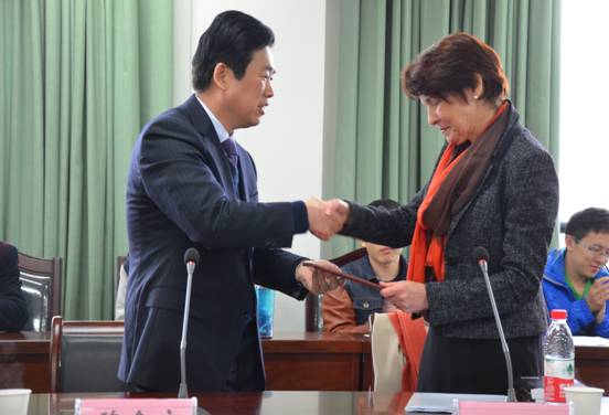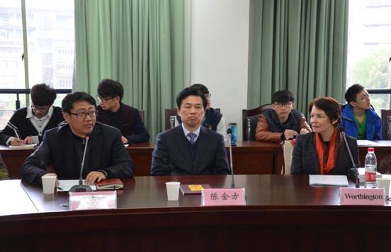 讲座开始前,校纪委书记陈金方代表学校向Worthington教授颁发在线漫画 兼职教授聘书。