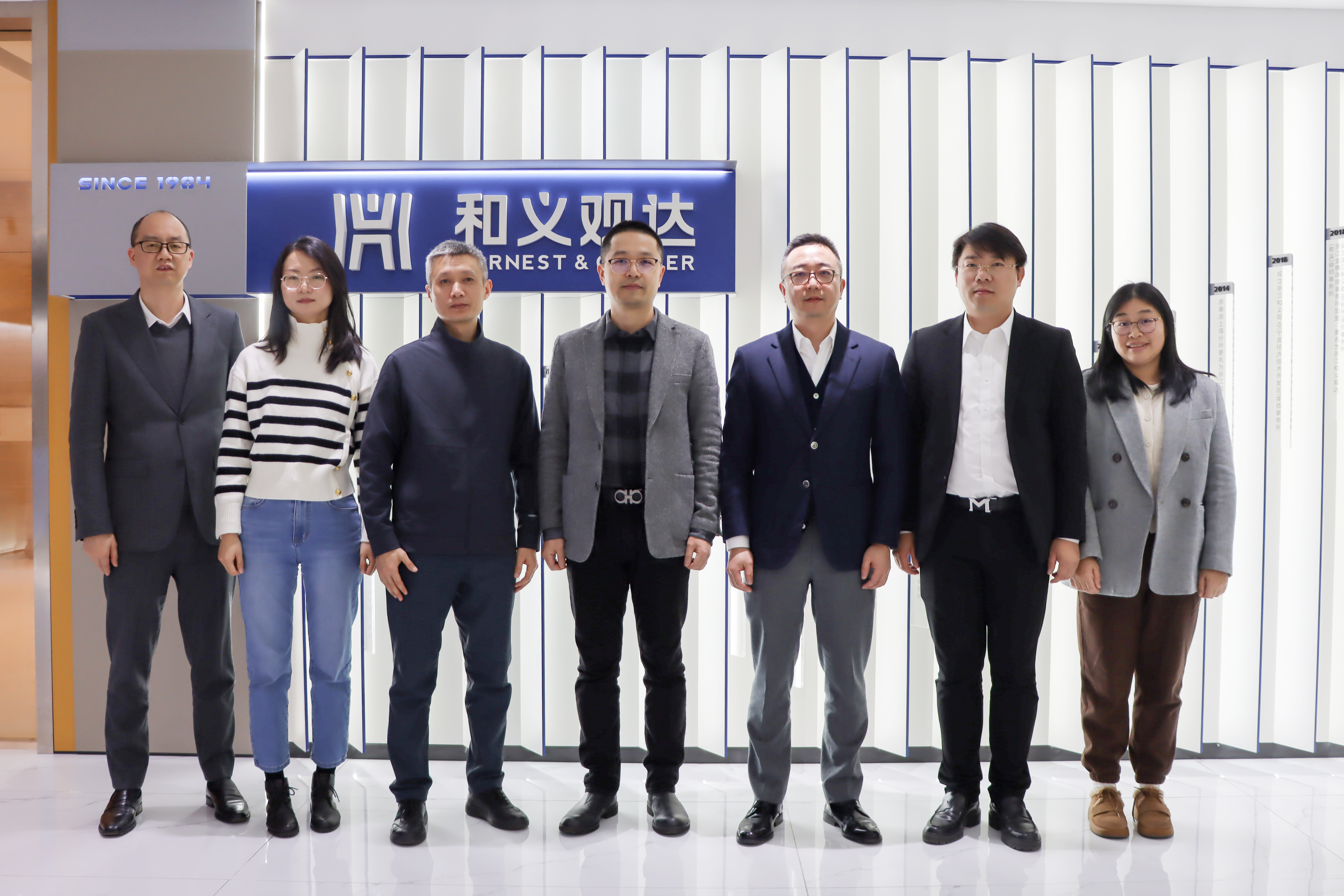 一行参观了律所办公环境,朱利军介绍了和义观达所历史沿革、党建工作、青年律师培养、专业化团队发展概况。