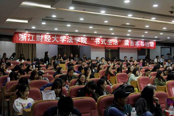 “书式生活”读“百本书”活动在学术中心101如期拉开序幕。17级法学三班班主任李森老师、学办主任17级辅导员姚秀芬老师、团委副书记王龙辉老师一起参加此次活动。