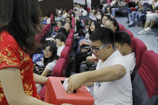 (新生将“写给四年后的自己”投入梦想之盒)