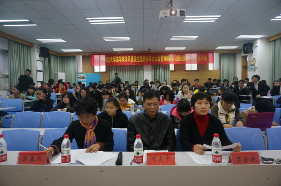 党总支副书记罗金艳、法律系主任李春燕等老师担任评委。本次大会由15级李昊远、柳杨主持,评比成绩由本次现场展示和微信投票两部分组成。