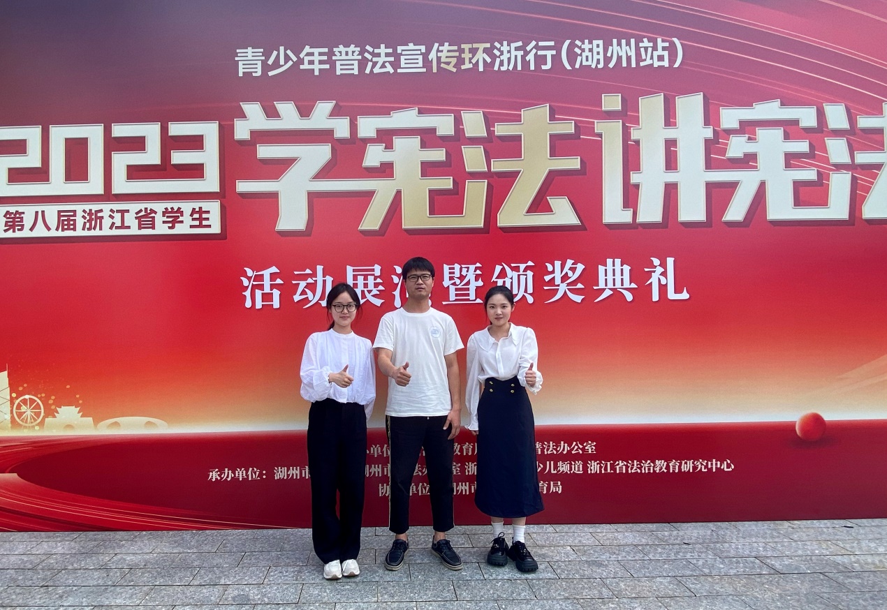 参加省赛两项赛事,由王俊和王龙辉两位老师担任比赛全程指导老师。省决赛场上,相培芸凭借自选演讲《心怀廌梦 行启初心》和即兴演讲《宪存纸上 法刻心中》,结合亲身经历和学习感悟,用生动的语言讲述宪法故事,获得了在场评委的一致好评,以9.41分的高分摘得演讲比赛高校组第一名,并将代表浙江省参加在北京举行的全国总决赛。寿悦美以深厚的宪法理论知识功底,沉着冷静,展示宪法知识要点,斩获素养竞赛高校组三等奖。凭借两位同学在省级决赛现场的优异表现,学校首次荣获该项赛事最佳组织奖,一举突破两项历史。