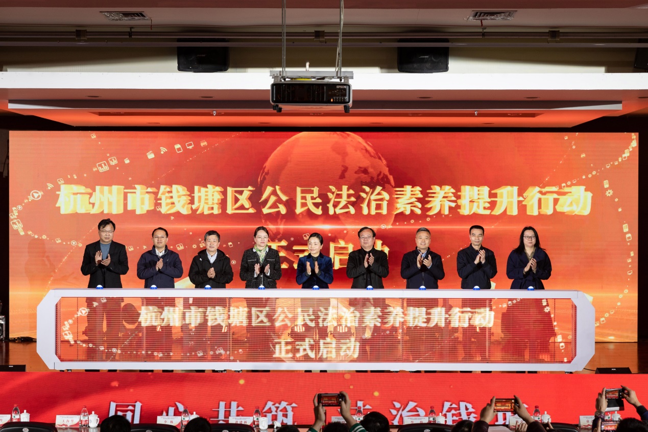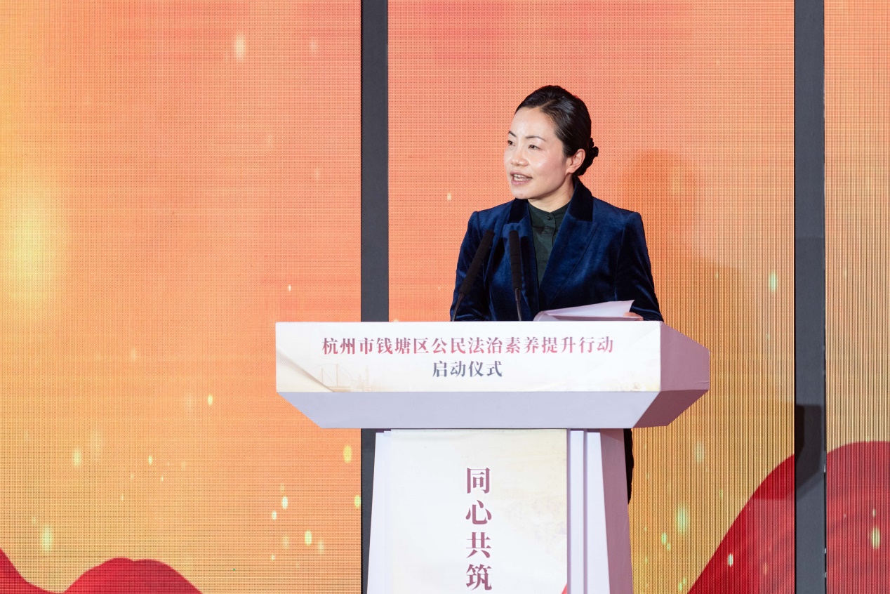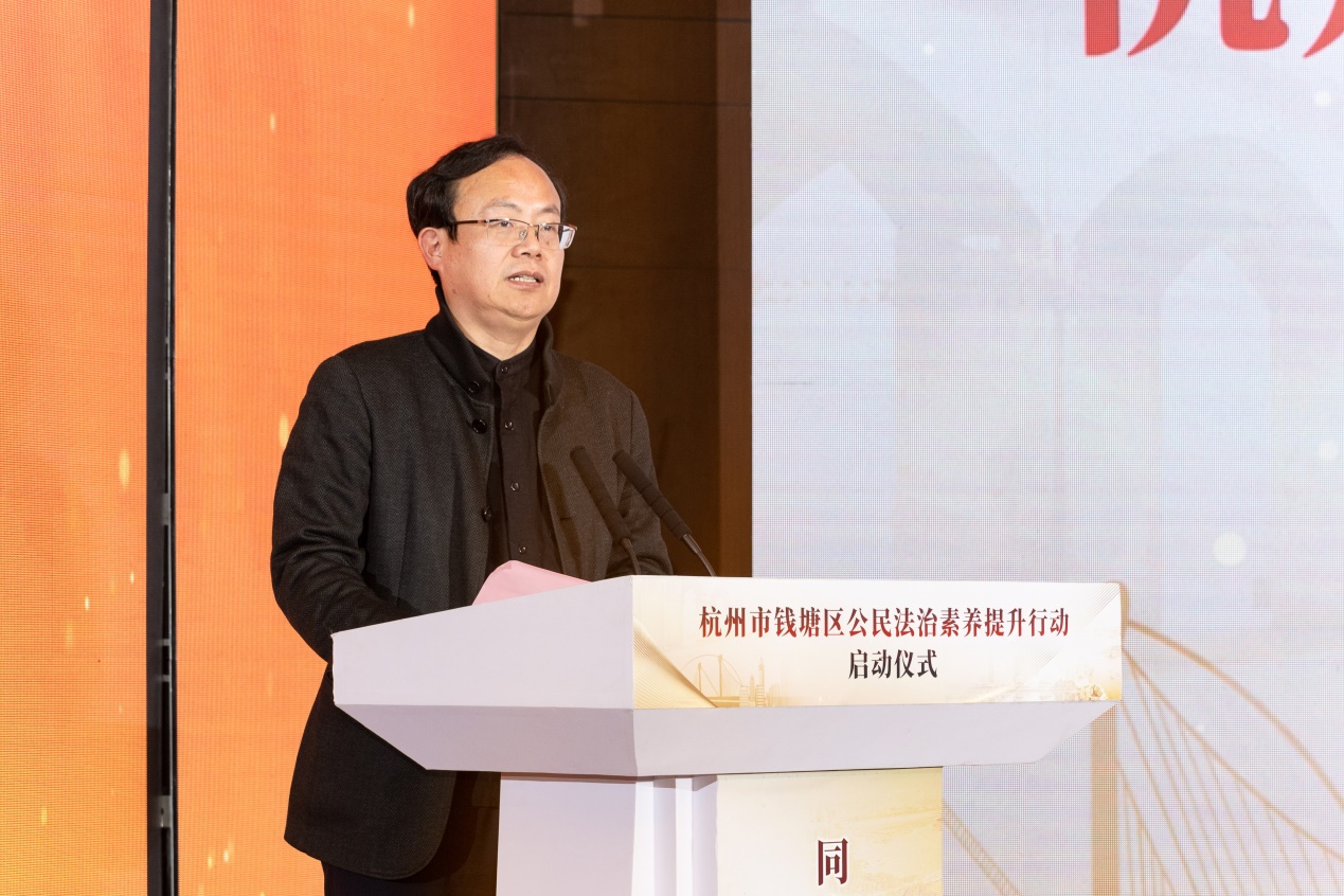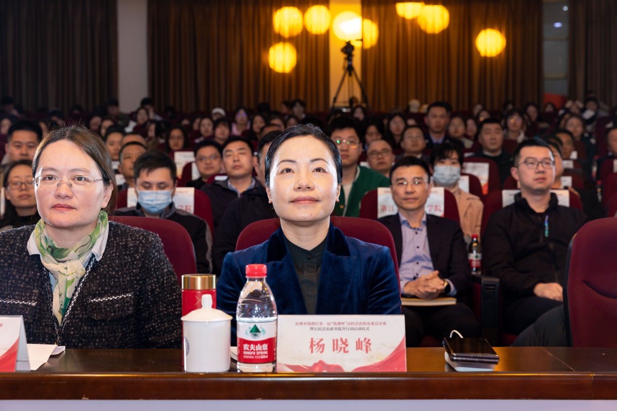 钱塘区委副书记、政法委书记、区委全面依法治区委员会副主任杨晓峰对获奖的队伍表示热烈的祝贺,并对钱塘区下一步法治建设工作提出三点要求:要提高认识,增强提升公民法治素养的使命感;要加大普法,增强提升公民法治素养的责任感;要依法行政,开创法治钱塘建设新局面。