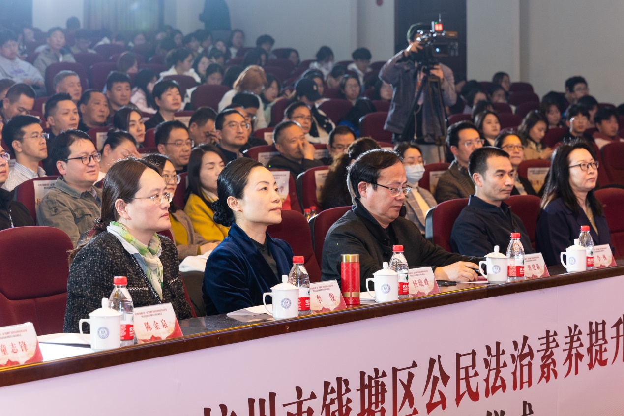 3月28日,钱塘区第一届“钱潮杯”高校法治辩论赛总决赛暨公民法治素养提升行动启动仪式在在线漫画 下沙校区隆重举行。校党委副书记黄建新,钱塘区委副书记、政法委书记、区委全面依法治区委员会副主任杨晓峰,区人大常委会党组成员、副主任李栋,新区管委会副主任、区政府党组成员李俊,区政协党组副书记、副主席陈金泉,在线漫画 院长童志锋、在线漫画 党委书记朱丹等领导出席本次活动。
