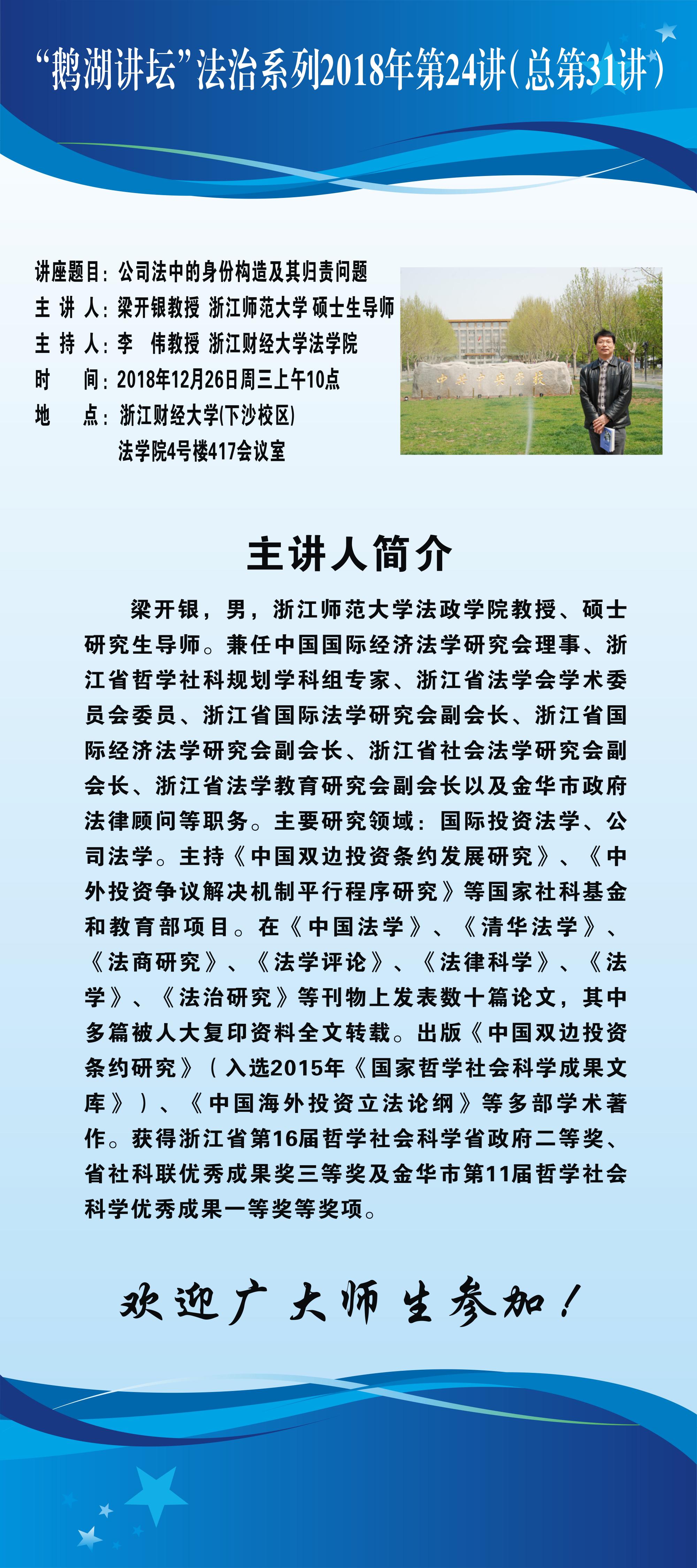 “鹅湖讲坛”法治系列2018年第24讲(总第31讲)浙江师范大学法政学院梁开银教授
