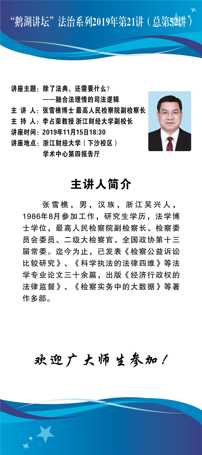 “鹅湖讲坛”法治系列2019年第21讲(总第52讲)最高人民检察院张雪樵副检察长