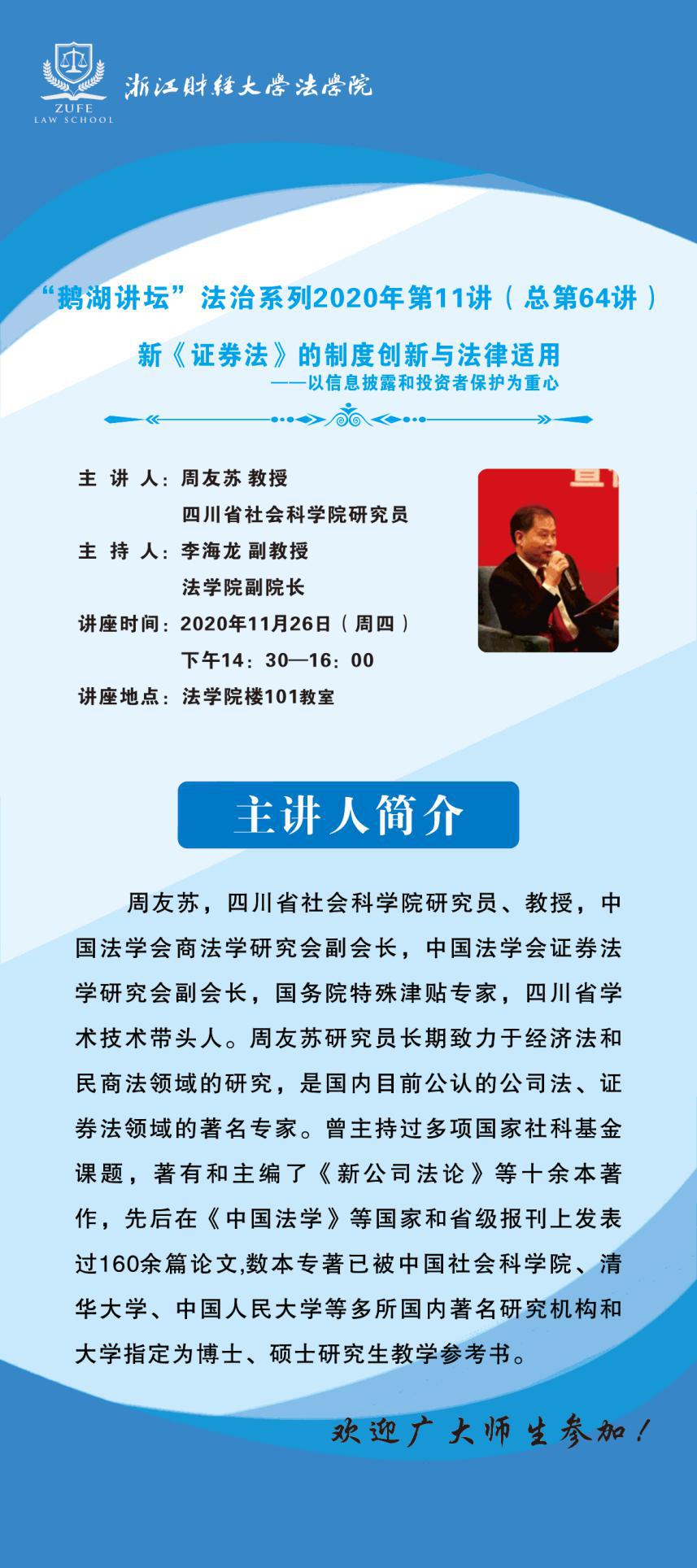 “鹅湖讲坛”法治系列2020年第11讲(总第65讲)四川省社会科学院研究员周友苏教授