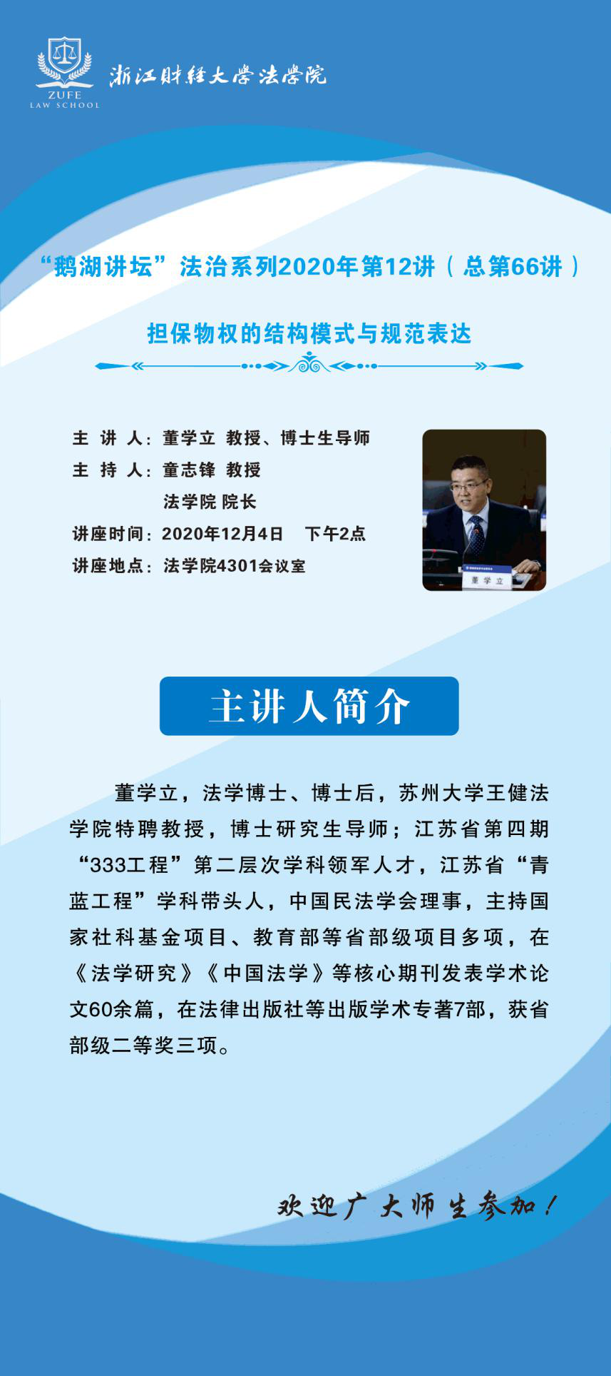 “鹅湖讲坛”法治系列2020年第12讲(总第66讲)苏州大学王健在线漫画 董学立教授
