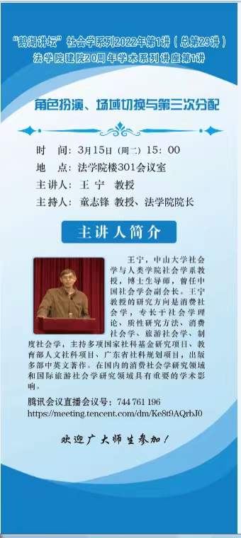 “鹅湖讲坛”社会学系列2022年第1讲暨在线漫画 建院20周年学术系列讲座第1讲中山大学王宁教授