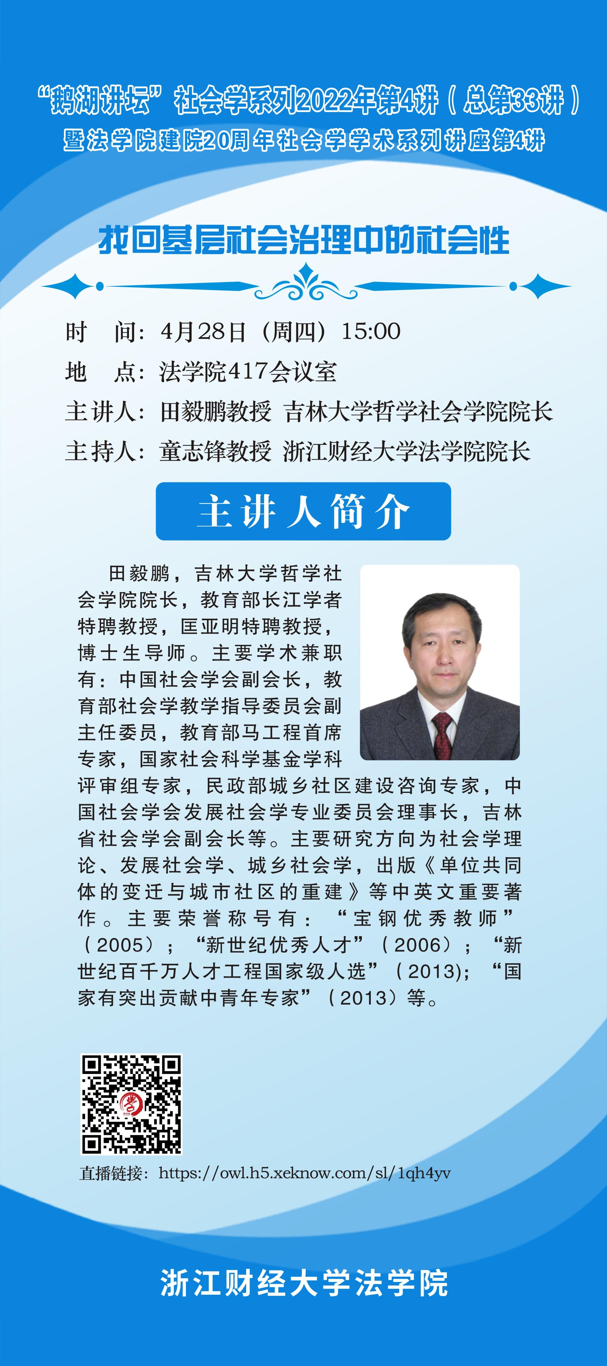 “鹅湖讲坛”社会学系列2022年第4讲暨在线漫画 建院20周年社会学学术系列讲座第4讲吉林大学田毅鹏教授