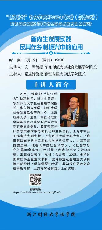 “鹅湖讲坛”社会学系列2022年第6讲暨在线漫画 建院20周年社会学学术系列讲座第6讲华东师范大学文军教授