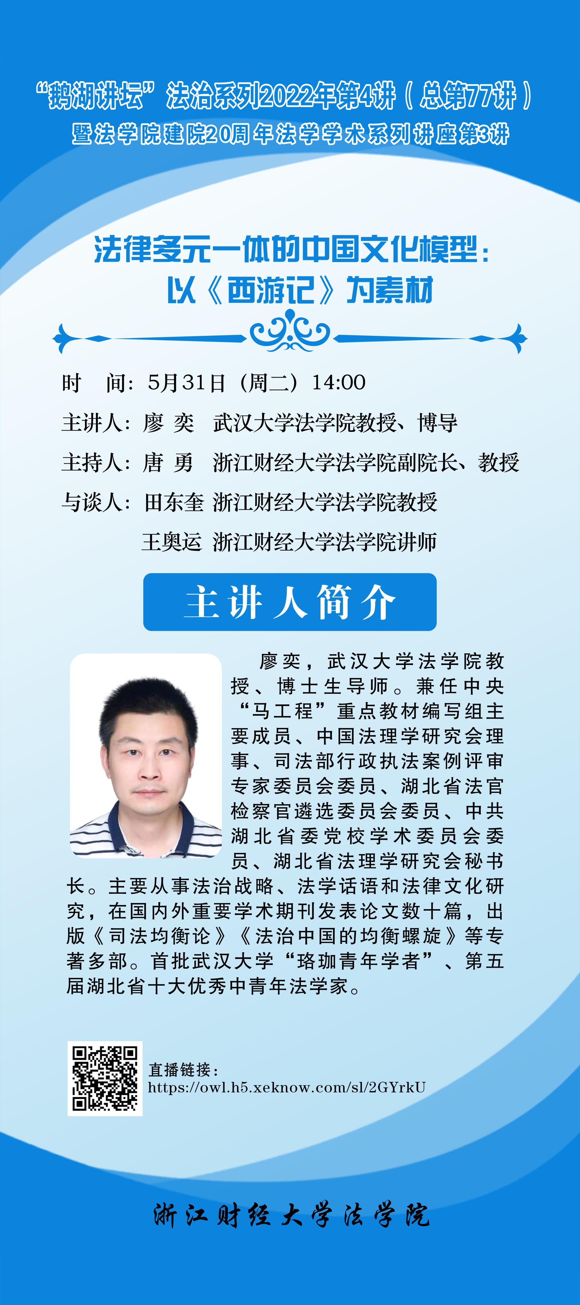 “鹅湖讲坛”法学系列2022年第4讲暨在线漫画 建院20周年法学学术系列讲座第3讲武汉大学廖奕教授