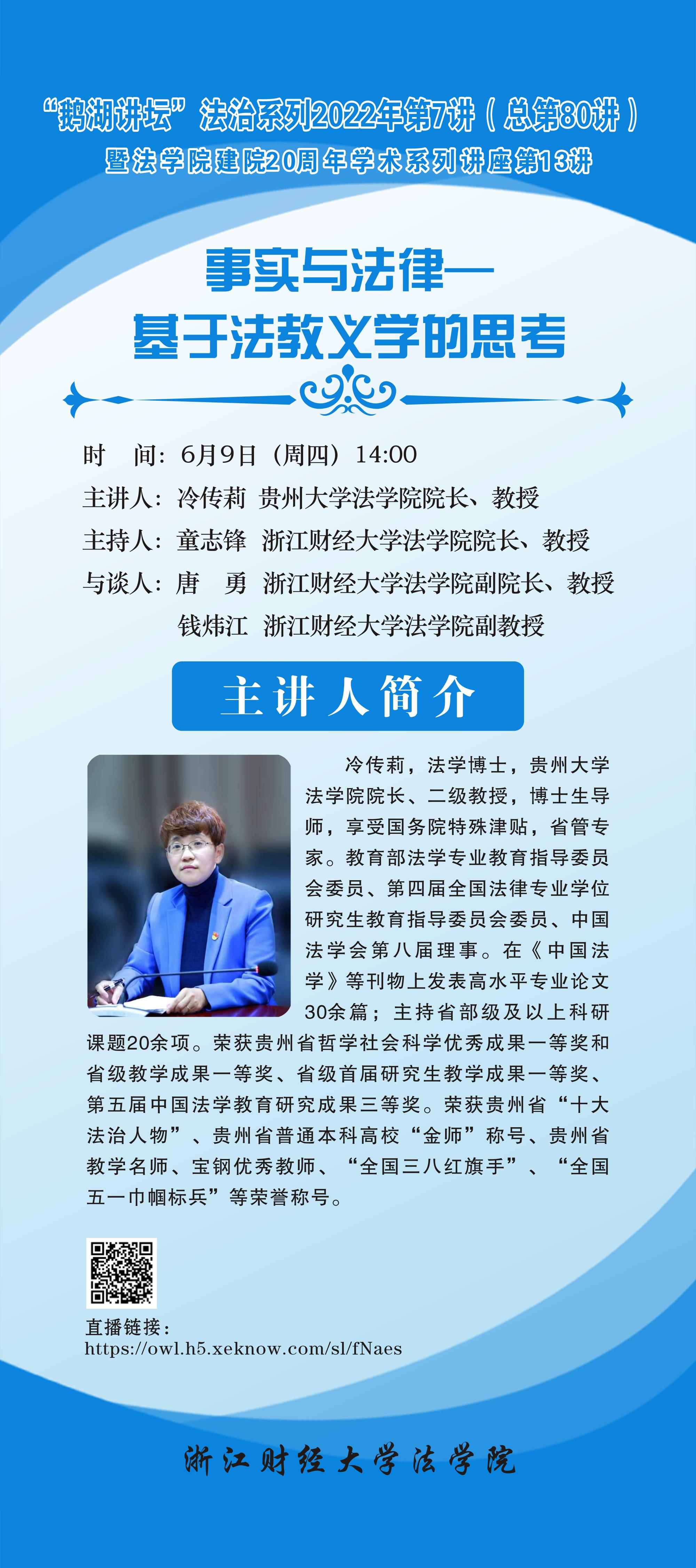 “鹅湖讲坛”法治系列2022年第7讲暨在线漫画 建院20周年学术系列讲座第13讲贵州大学在线漫画 院长冷传莉教授