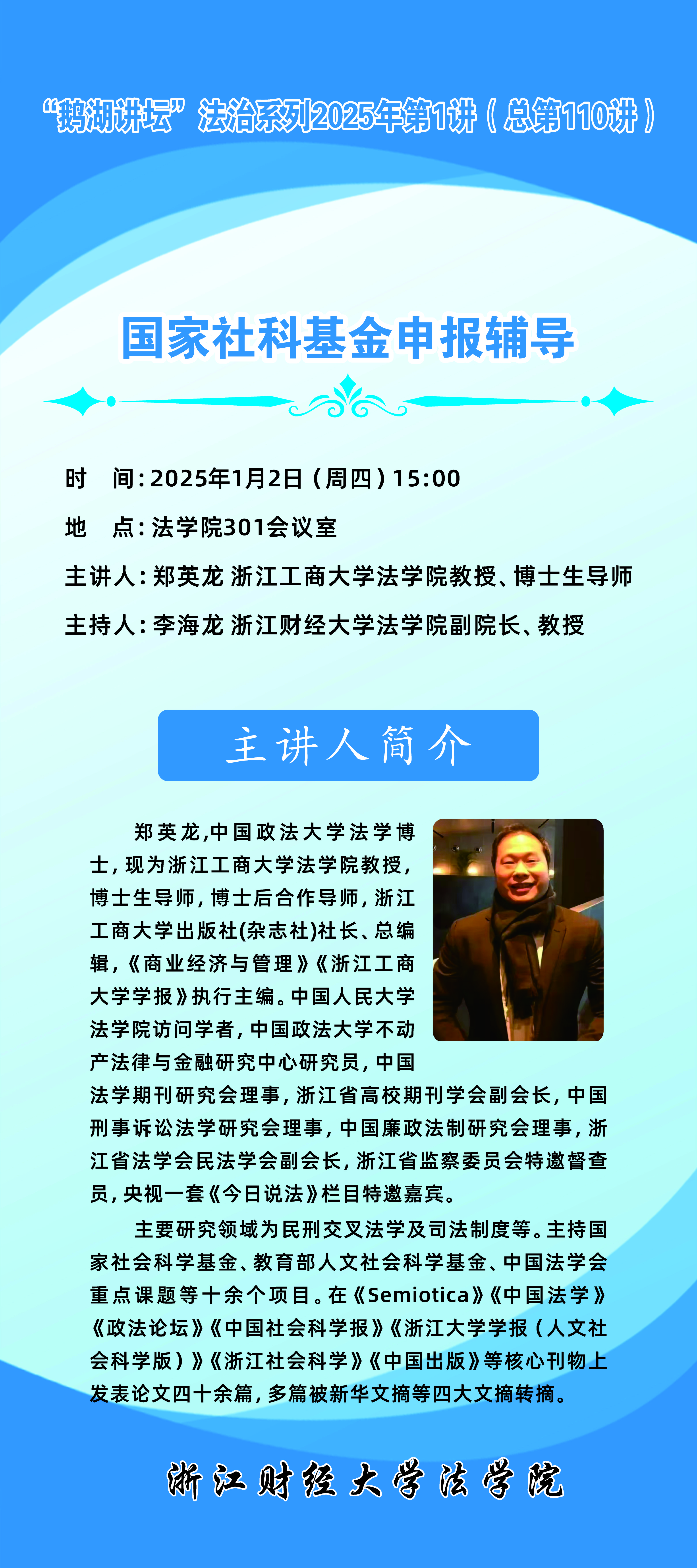 “鹅湖讲坛”法治系列2025年第1讲(总第110讲)浙江工商大学郑英龙教授