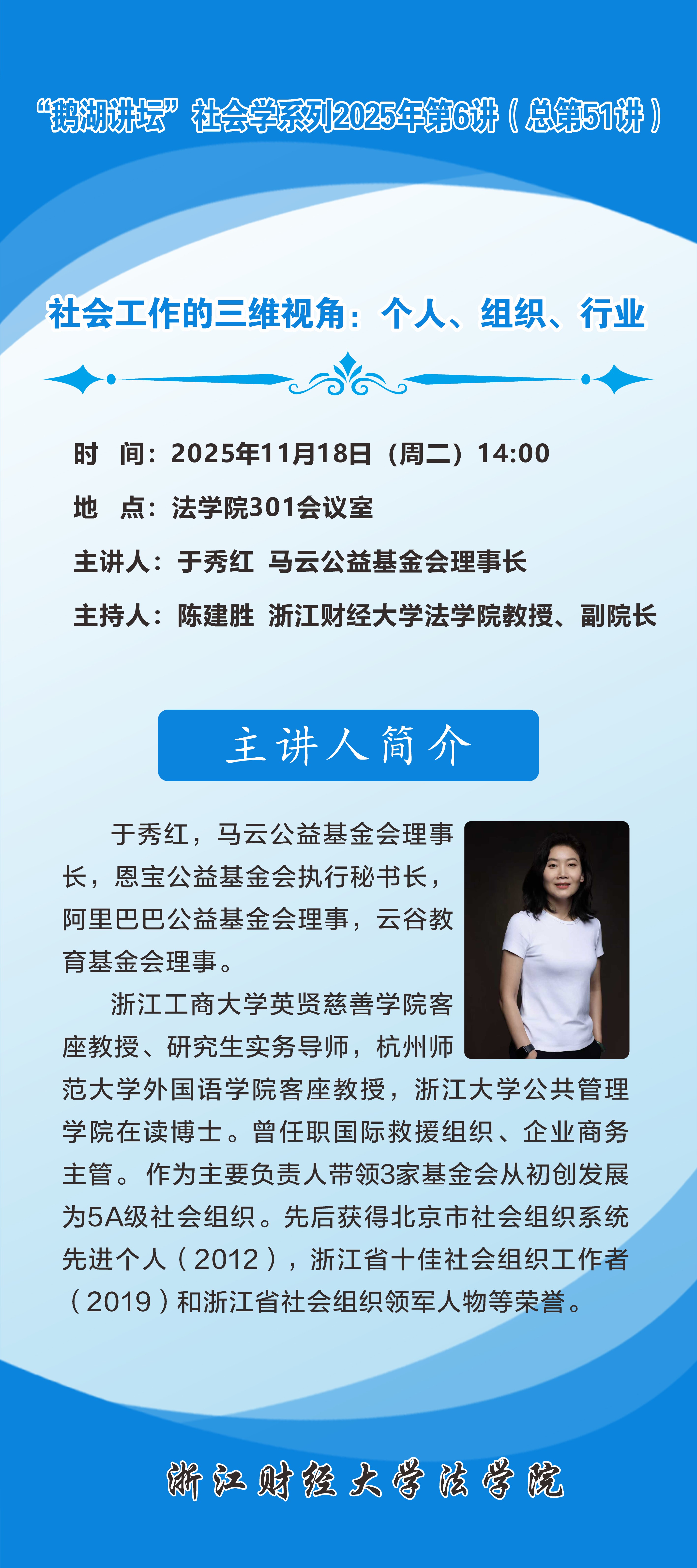 “鹅湖讲坛”社会学系列2025年第6讲(总第51讲)马云公益基金会于秀红理事长