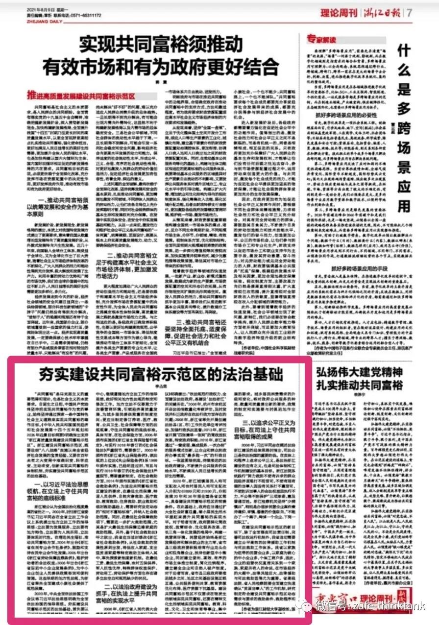 李占荣教授的理论文章《夯实建设共同富裕示范区的法治基础》发表于《浙江日报》2021年8月9日理论版。