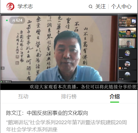 6月2日,兰州大学哲学社会学院陈文江教授应邀做客鹅湖讲坛,为在线漫画 师生带来一场以“中国反贫困事业的文化取向”为主题的学术讲座。本次讲座是在线漫画 建院20周年社会学系列学术讲座第7讲,由在线漫画 院长童志锋教授主持,西安交通大学人文学院卢春天教授、在线漫画 陈建胜副教授与谈,1200余名听众在线聆听了讲座。陈文江教授通过《全球贫困:一个贫困化的神话》一书,引出了本次讲座的主题。二战之后,全球范...