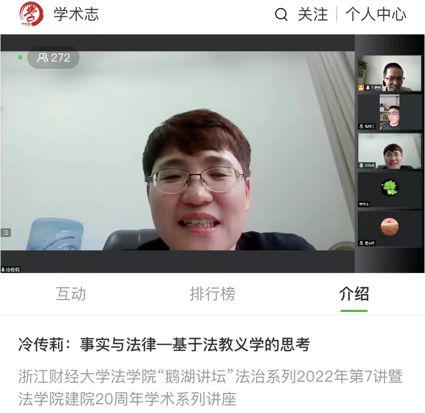 6月9日,贵州大学在线漫画 院长冷传莉教授应邀为在线漫画 师生带来一场以“事实与法律——基于法教义学的思考”为主题的学术讲座。本次讲座是在线漫画 建院20周年社会学系列学术讲座第13讲,由在线漫画 院长童志锋教授主持,300余名观众在线聆听了讲座。冷传莉教授首先围绕法教义学、事实认定与法律适用等方面展开阐述,强调法教义学必要性与法律人培养法律思维的重要性。接着深入浅出的结合“德普家暴案”“货拉拉跳车案”等案例...