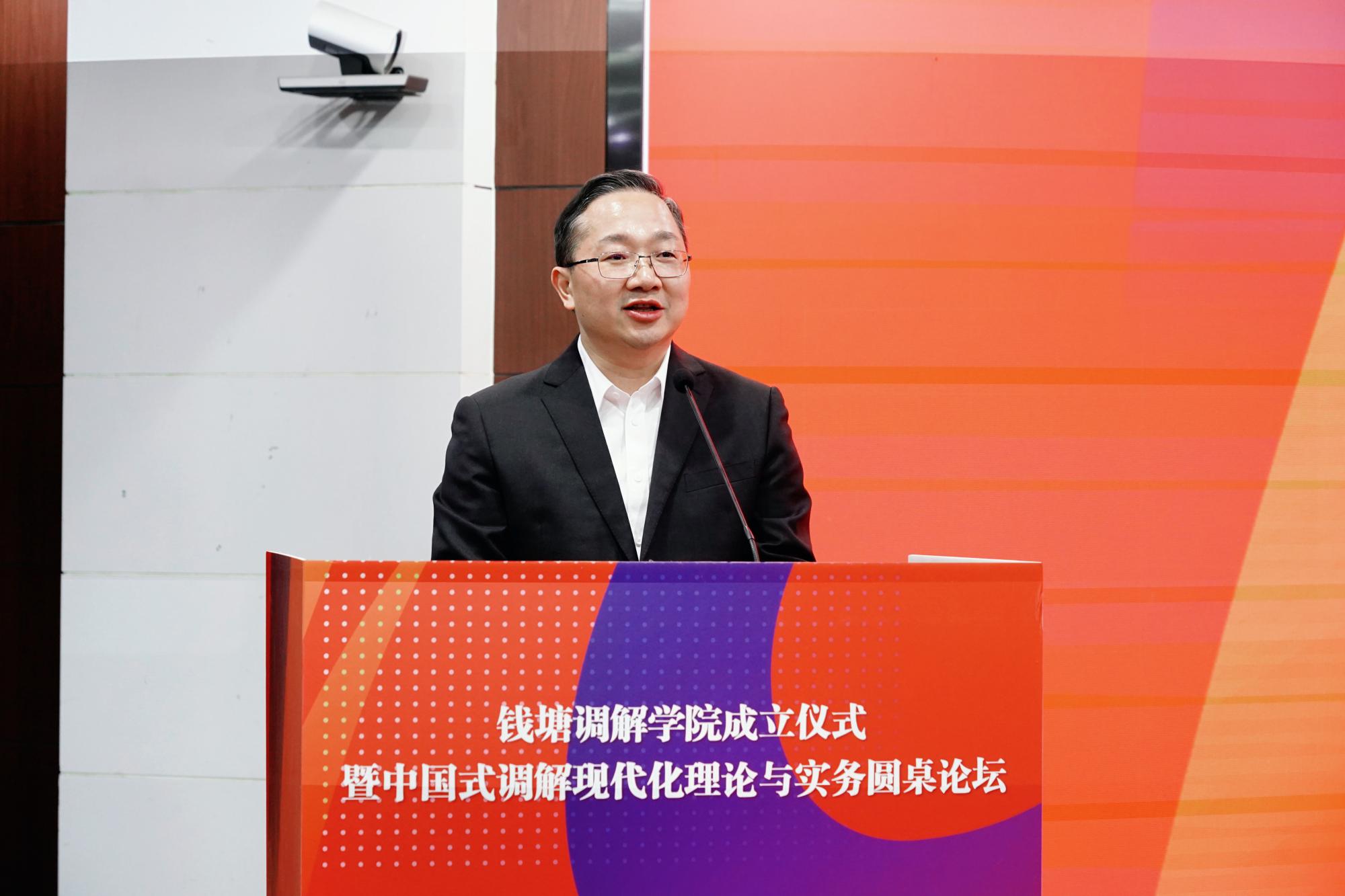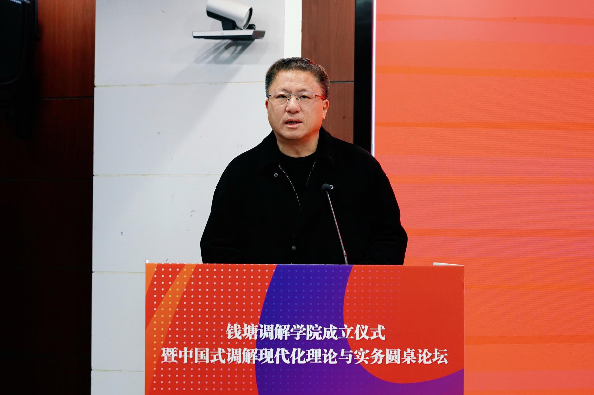 院长唐勇一起签署钱塘调解学院共建协议。